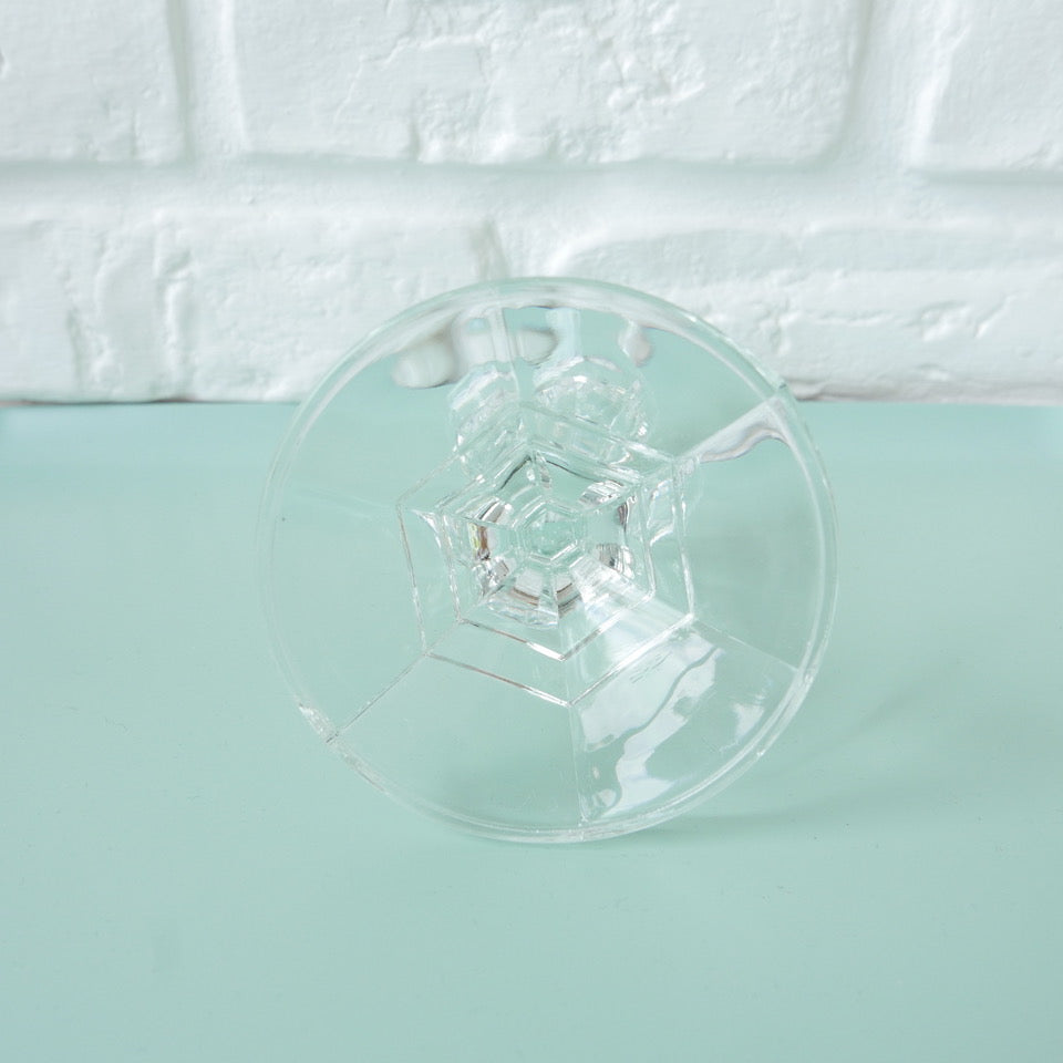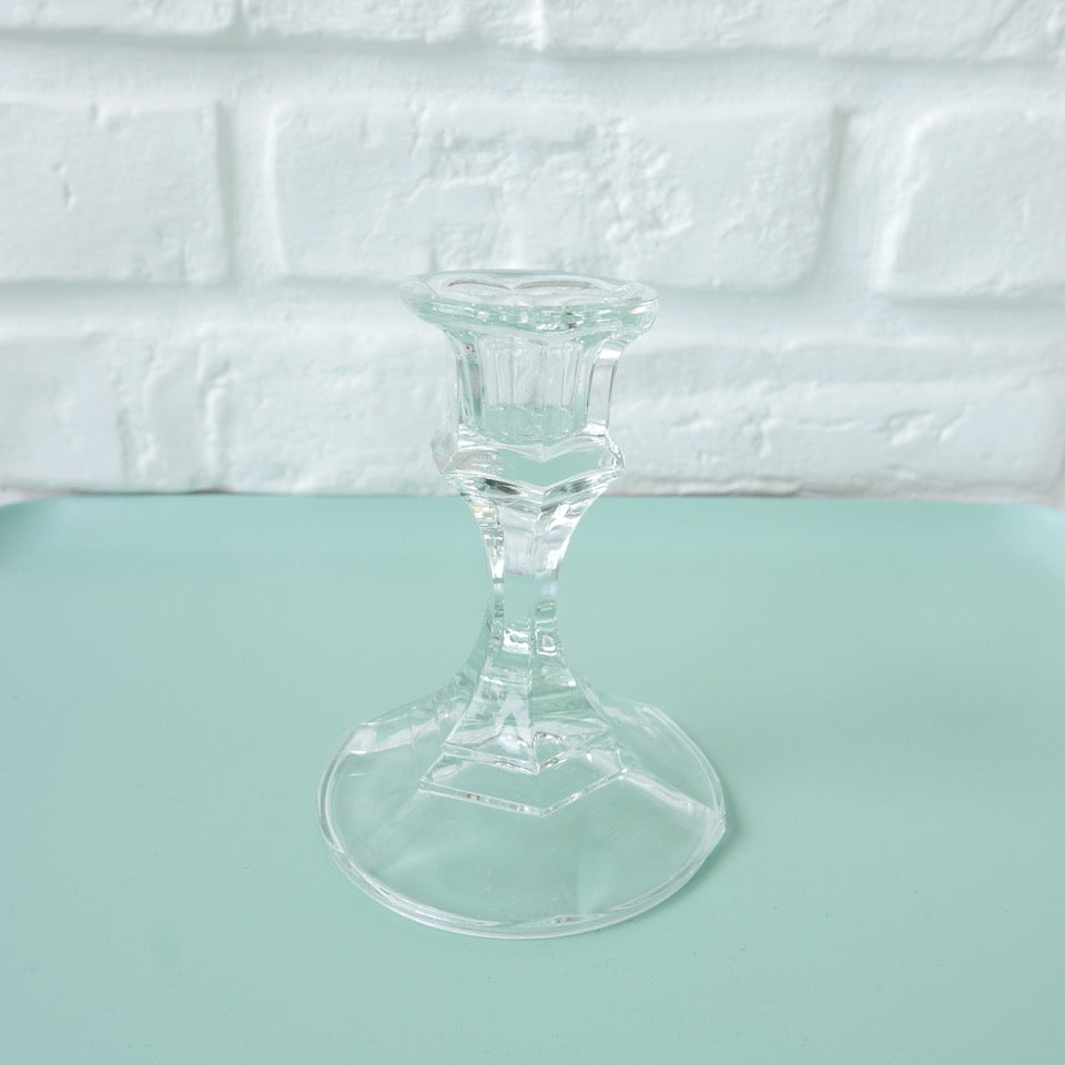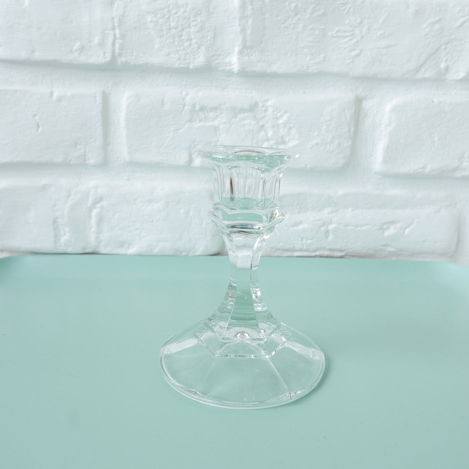 Ravissant bougeoir en verre moulé taillé sur un petit pied.