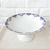 Ravissant compotier ancien, ou présentoir sur piedouche, de très belle taille en faïence émaillée de la Manufacture de Moulin des Loups, Hamage (Nord) à décor dentelle de couleur bleu et motif floral rose sur fond blanc.