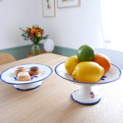 La coupe principale comme le pied sont réhaussés d’un filet bleu stylisé qui s’accorde à merveille avec le décor floral central.