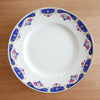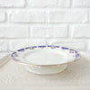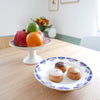 Ravissant plat serviteur ancien, ou présentoir sur piedouche, en faïence émaillée de la Manufacture de Moulin des Loups, Hamage (Nord) à décor dentelle de couleur bleu et motif floral rose sur fond blanc.