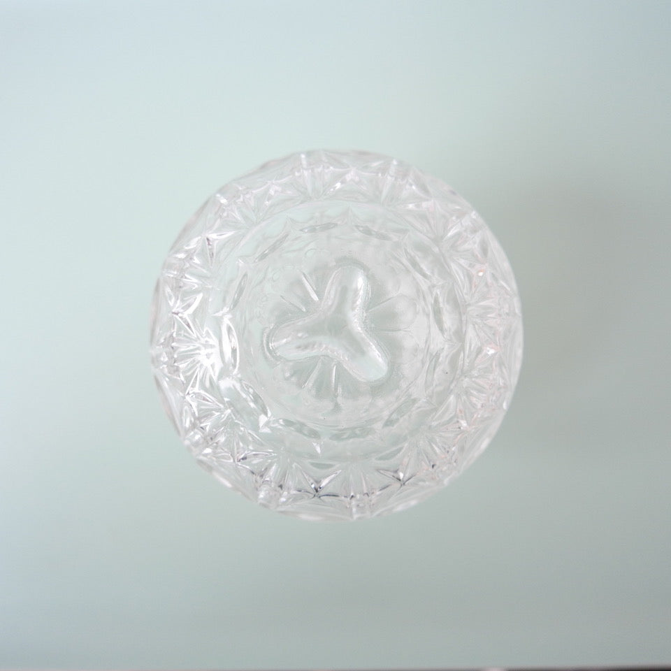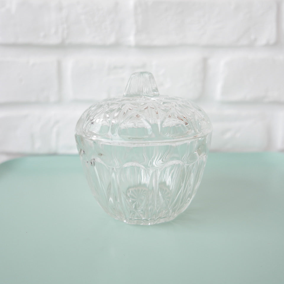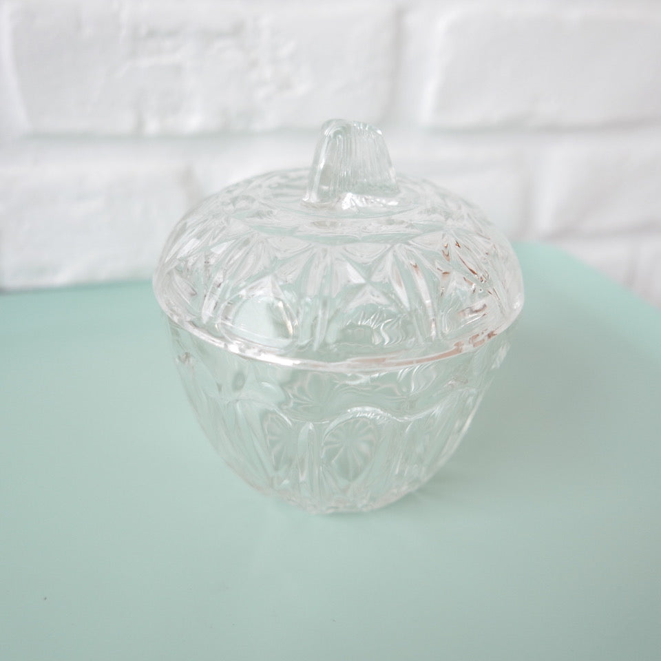 Ravissant pot en verre taillé et son couvercle, de forme type bonbonnière, datant des années 1960-1970’s.