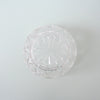 La gravure du verre présente des formes géométriques harmonieuses, ainsi qu’une rosace en forme de fleur à 12 pétales au fond du pot comme sur le couvercle.